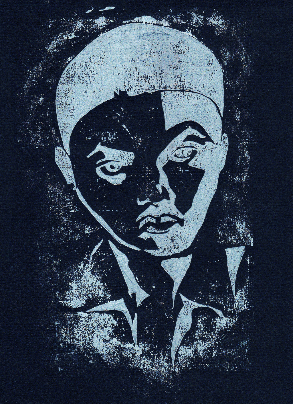 Initial print. I used masking and caustic soda to etch a texture into the background.